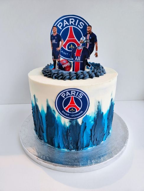 Kagen er dækket med smørcreme og pyntet med fondant og sukkerprint i dit yndlingsholds farver.