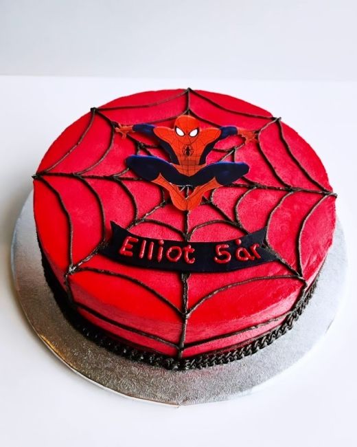 En vaskeægte superheltekage. Spiderman-kagen er dækket med smørcreme og dekoreret med fondant og edderkoppespind – lige til at imponere små (og store) fans.