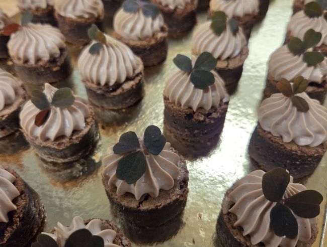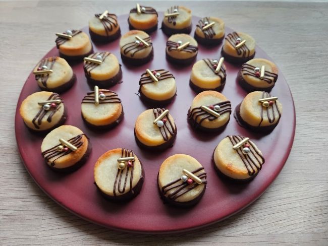 Små kransekagebidder med 62 % 62% valrhona chokolade.